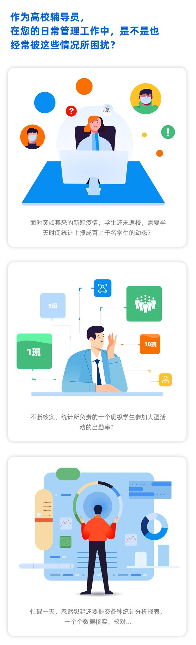 人才培養是高校的榜首要務(wù),高校在抓好學(xué)生教育作業(yè)的一起,更多的是要加強對學(xué)生的辦理作業(yè)。作為在校大學(xué)生健康成長(cháng)的指導者和引路人,面臨很多的學(xué)生辦理作業(yè)內容雜亂,事無(wú)巨細,但在傳統的辦理方式下,盡管耗費了很多的人力、物力與精力,仍會(huì )呈現信息傳達不到位、數據計算困難、辦理功率低劣等問(wèn)題。數字年代,怎么經(jīng)過(guò)數字技能完成精準高效育人,成為高校學(xué)生辦理作業(yè)新的挑戰!