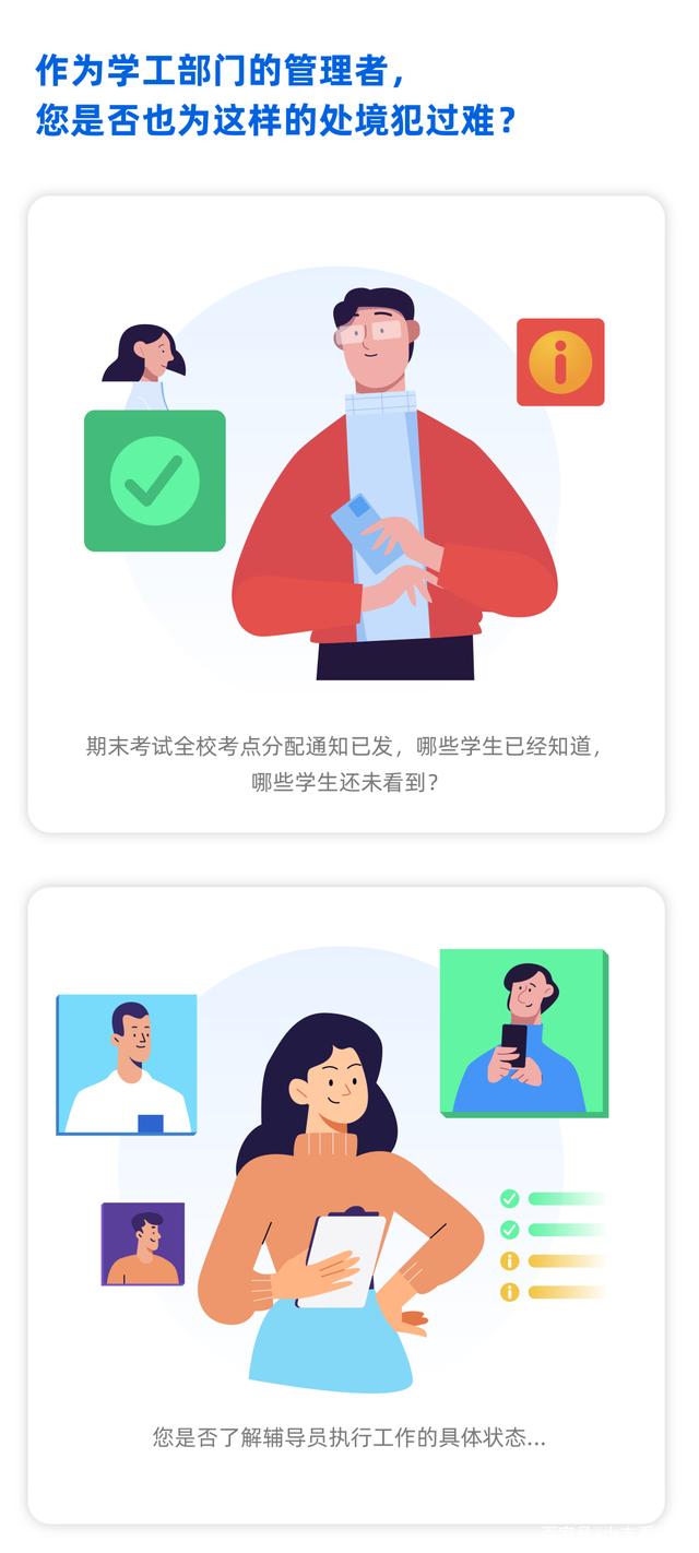 為處理這一問(wèn)題,自友教育根據國家《教育信息化2.0行動(dòng)計劃》的方針要求,聚集信息技能與教育教育深度交融,根據20余年高校學(xué)生辦理經(jīng)驗及IT技能優(yōu)勢,自主研發(fā)了環(huán)繞輔導員高頻作業(yè)場(chǎng)景、助力學(xué)生辦理的信息化作業(yè)渠道——“才智學(xué)工體系,經(jīng)過(guò)自有高校的實(shí)踐驗證,面向高校辦理人員、輔導員和全體學(xué)生,經(jīng)過(guò)信息化手法,可完結學(xué)生日常事務(wù)的全流程線(xiàn)上辦理,極大的提高了信息計算的快捷性、準確性、真實(shí)性,在下降人力本錢(qián)的一起,可大幅提高作業(yè)功率,全方位完結學(xué)生辦理作業(yè)的體系化、規范化和數據化。
