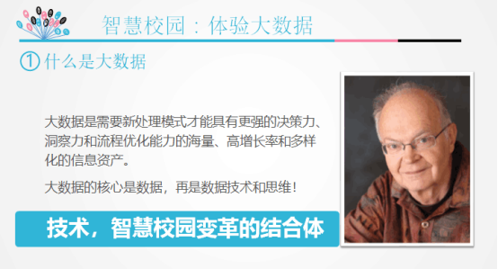 大數據技術(shù)是建設智慧校園的重要技術(shù),智慧建設元素的一個(gè)重要組成部分就是大數據。大數據分析了智慧校園中遇到的問(wèn)題,根據數據的顯示,管理者能夠提出了相應解決方案。