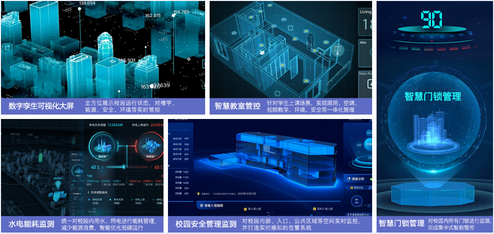 根據數字孿生、物聯(lián)網(wǎng)、AI智能等技能打造“可視化駕駛艙智能運營(yíng)中心”,支撐數字大屏、PC端、移動(dòng)端多硬件,完結對校園的收支辦理、視頻監控、巡更、安全、節能、環(huán)境監測、事情告警、樓宇管控、用電辦理等運用場(chǎng)景實(shí)時(shí)監測,完結智能化、一體化辦理。