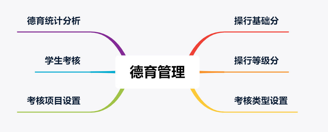 其中整個(gè)等于考核包含:操行基礎分、操行等級分、考核類(lèi)型、考核項目、學(xué)生考核,德育統計分析。